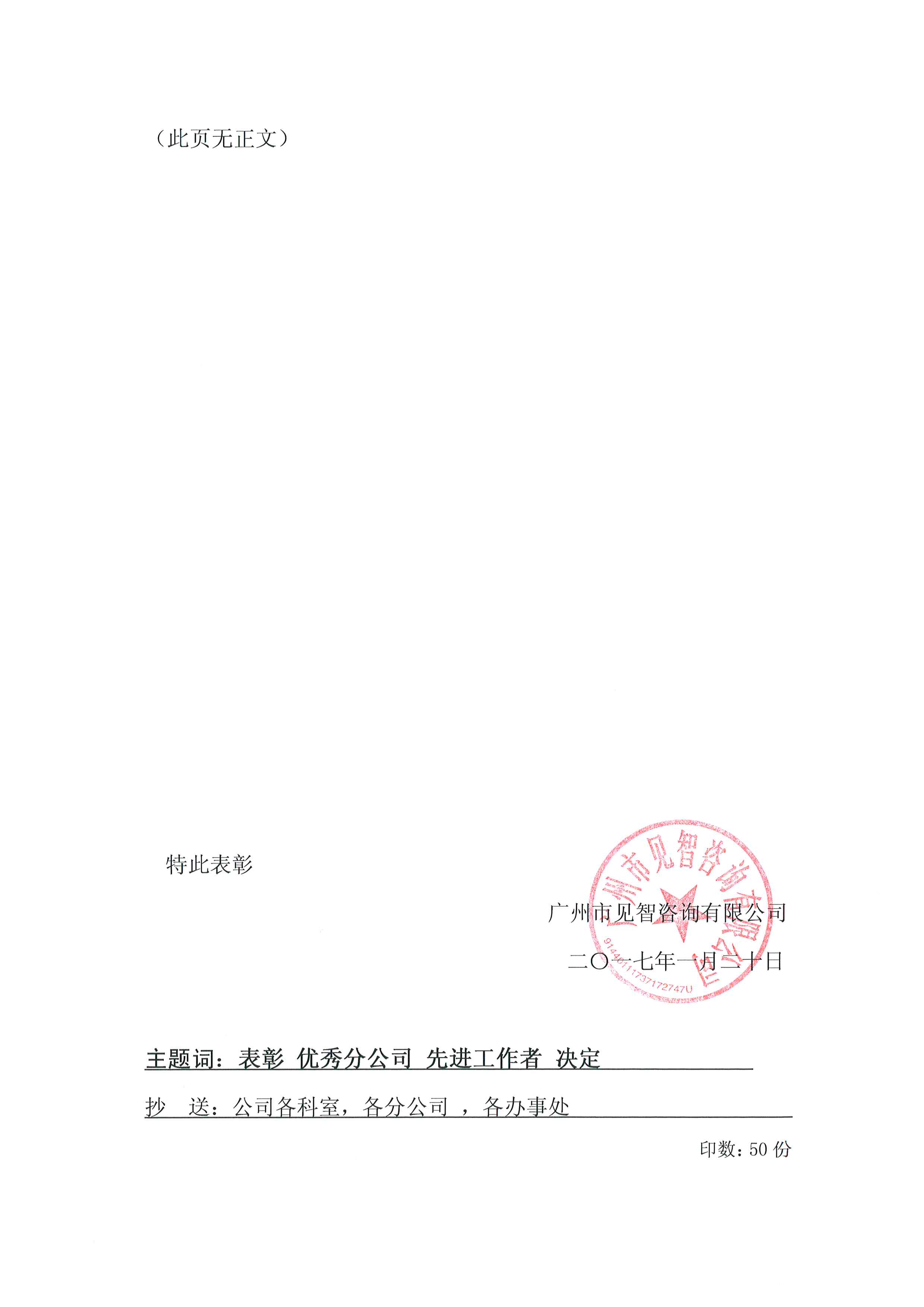 關于表彰2016年度優秀分公司、先進工作者的決定
